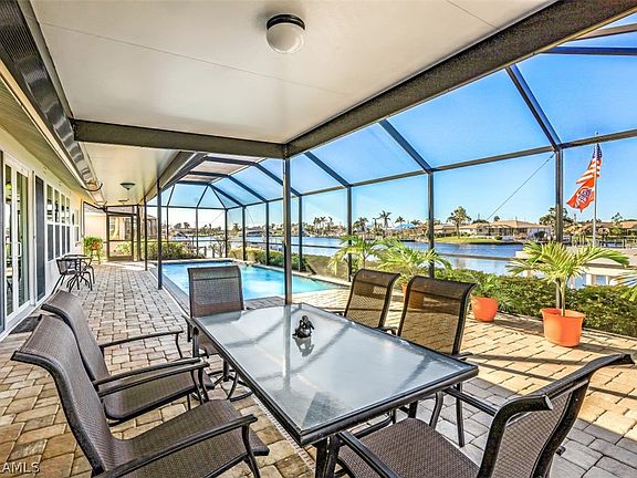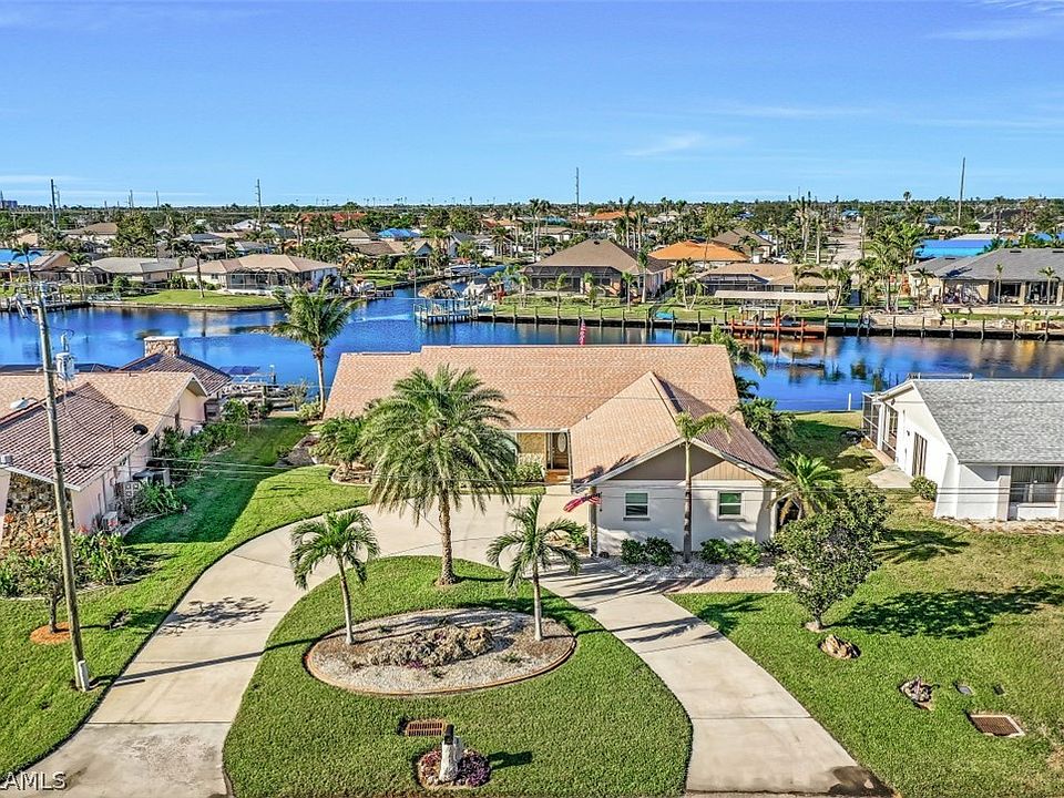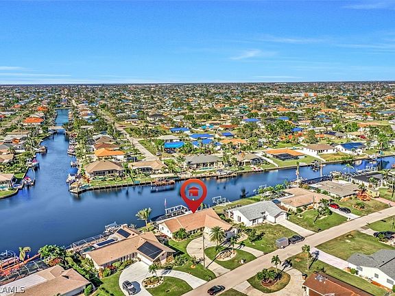ENJOY some of the best BOATING & FISHING in SW Florida from this GORGEOUSLY REMODELED GULF-ACCESS home on INTERSECTING CANALS with SALT WATER POOL, circular driveway, side-load garage, impact windows & entry door, concrete dock & 10,000 lb boat lift! Roof 2019. Ideally located in the heart of Cape Coral near beaches, golf courses, shopping, dining & entertainment! Double etched-glass impact-rated doors w/dual sidelights welcome you to the spacious Living area & EXPANSIVE WATER VIEW! SO MANY UPGRADES including quartz counters throughout & a built-in Kegerator Beer Dispenser & Wine Bar in the expanded Living area. Beautifully appointed Kitchen has a prep island, Breakfast Bar & 42" raised-panel wood soft-close cabinets & drawers. Both Baths feature custom tilework. Step out to the roomy screened lanai to relax in your sparkling Salt Water pool w/paver deck! Meticulously maintained yard has concrete landscaping curbing & auto-irrigation to make your life easy! AWESOME CONCRETE DOCK features 2 underwater Snook fish lights on a timer. New A/C system & ductwork; newer water heater. OVERSIZED 2-car garage for your vehicles & water toys! Extra attic insulation saves money on energy bills!