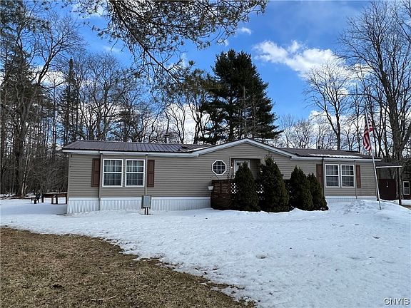 Camp is Calling...Or Call it Home! This Triple Wide Mobile home is beautifully set on on over 5 acres with 490 feet of frontage on the wonderful West Canada Creek. Three large bedrooms, including a primary with on-suite, a second full bath, a massive family room, with sliding glass door and plenty of windows all await. Bordered by state land on the north side of the property gives you even more of the Adirondack Park to enjoy. Recent improvements include all new pex plumbing from the pump to every faucet!
