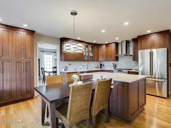 This beautifully updated and incredibly spacious ranch home offers flexible living options with 3 separate living areas and 5 (could be 6 bedrooms)! You enter into a formal living room that leads to the formal dining room. Both spaces are flooded with natural light and offer abundant space for entertaining guests. Make your way into the kitchen which has been completely updated and offers sleek dark cabinetry and a huge island with built-in dining table. Adjacent to the kitchen area is a comfortable family room ideal for relaxing. This space also walks out to the huge shaded deck overlooking the wooded lot. There are 3 bedrooms on the main floor including a primary suite with walk-in closet with custom shelving, and an ensuite bath with double vanity and a huge walk in shower. A hall bath is convenient for the other bedrooms and guests. The basement offers a 3rd living area, 2 bedrooms, a full bath and an additional room that can be uses as a gym, office or 6th bedroom.
