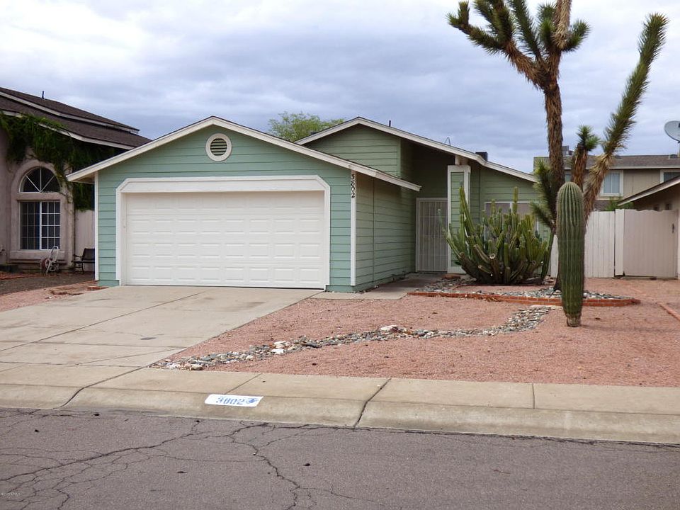 3 bedroom 2 bath home for rent in North Canyon Ranch. Newer 2 two tone interior paint. Kitchen has smooth top stove, built-in microwave and dishwasher. The refrigerator, washer and dryer are included. The master bedroom has a large closet and door to the covered patio. Master bathroom has an oversized tub and dual vanities. Vaulted ceilings, plant shelves, and ceiling fans. Low maintenance gravel front and rear yard.