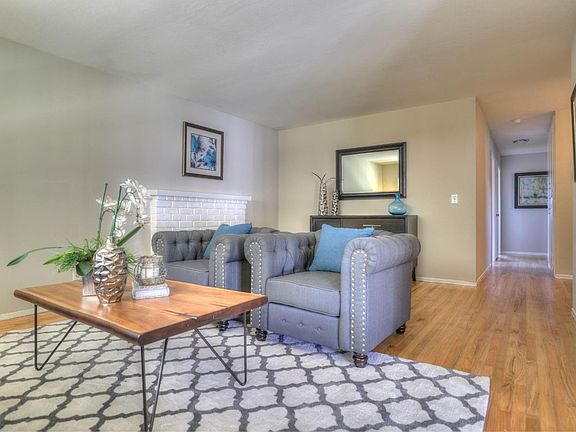 Welcome to this spectacular and contemporary home. NEWLY remodeled and freshly painted interior with designer colors. Formal entry with coat closet opens to spacious living room with cozy fireplace and refinished hardwood flooring. Completely remodeled hall bath features Mare Bianco porcelain tile wall, Alcove soaking bathtub, stone-topped vanity, recessed-cabinet mirror and luxury vinyl plank flooring. Remodeled en suite bath has Mare Bianco porcelain shower wall with glass enclosure, cultured marble vanity top with white sink and luxury vinyl plank flooring. Updated Kitchen with new laminate flooring. New light fixtures. Central A/C. Conveniently located near Westgate mall, parks, schools, shopping, dining and entertainment, within minutes to Apple Inc, HP and numerous other high-tech companies. Easy commute via Hwy 280, San Tomas & Lawrence Expwys to work and parks.
