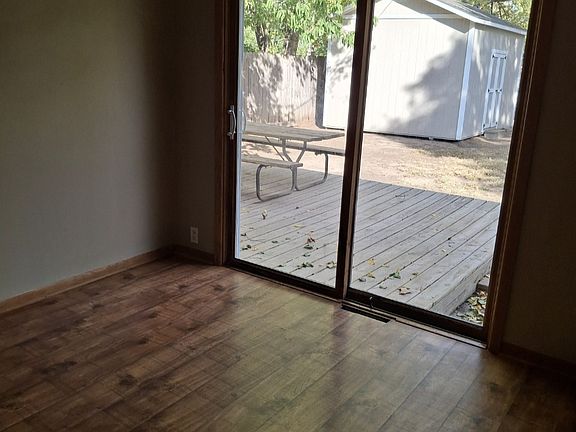 move in ready, ceilings, walls, fixtures have all been redone. laminate wood flooring throughout, ceramic tile in kitchen and bath, fully insulated home, new plumbing, lots of storage in utility room and hallway, separate dining area, nice size living room, third bedroom can be used as an office as it has access to large deck through a sliding door, large back yard with privacy fence. washer dryer hook ups, oversized shed, underground storm shelter, lots of shopping nearby, easy access to highway, quiet neighborhood. pets are possible with additional fees I year lease, Tenant pays all utilities, smoke free home, ok to smoke outside. No dogs on the vicious dog list. Good credit a must, Tenant responsible for upkeep of the yard,