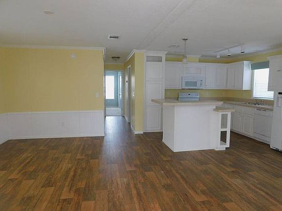 This home exhibits Florida in a nutshell. This bright and cheery home has lots of windows that invite the natural sunlight in. The large front porch enticing sitting outside and enjoying the pleasant Florida weather and beauty. This home has an open floor plan with kitchen as focal point. Kitchen is roomy with lots of cabinets. Master bedroom hosts a large walk-in closet. The driveway has ample amount of room to easily fit two vehicles. This home comes with a manufacturer's warranty.