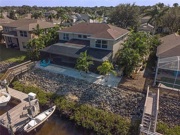 Welcome to your dream home in lovely River Pointe. This gorgeous and pristine 2-story home impresses with soaring ceilings that add drama as natural light filters in from an expansive water view on this much sought-after canal along the Manatee River. This desirable and flexible floor plan offers endless possibilities that you have been craving. A stunning brand-new custom kitchen with an oversized island is the perfect hub for entertaining as you and your guests enjoy the openness of this home. After spending a day on the water, dock your boats and jet skis on the three lifts steps away from your back door. Enjoy a cool drink next to your brand-new salt-water pool and hot tub. Entertain guests and serve delicious meals on your spacious travertine paved patio with brand new open view screen enclosure. At the end of a fun filled day, retire to your serene, newly renovated first floor master suite and bath with travertine floors, walk-in shower, dual vanities and granite countertops. The oversized garage is a handyman's haven with lots of tool storage, refrigerator, utility sink and work area. All of this is located only 6 miles to Tampa Bay by boat, close to I-75, 50 miles to Tampa Airport and a short, 5 minute commute to Manatee Memorial Hospital. With great schools, shopping & restaurants nearby, your Florida lifestyle will be all you have been dreaming of!