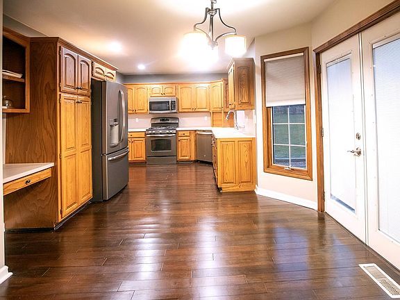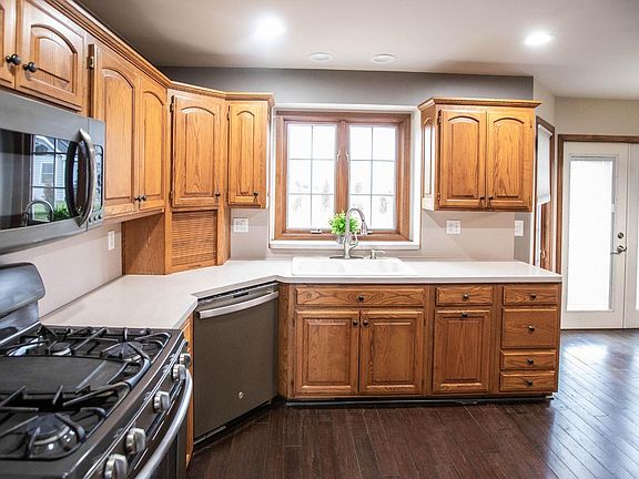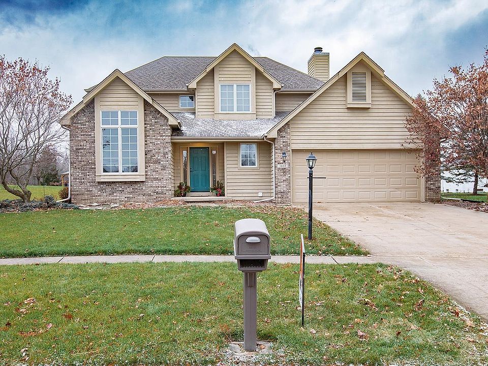 ***Price improved 379,000.00 ****BRAND NEW ROOF***Beautiful 4 bedroom 3.5 bath home in Greenfield Creek Subdivision. This 1.5 story features an oversized 2.5 car heated garage nestled on a nicely landscaped cul de sac street. Enter the home into the 2 story foyer that features hardwood flooring and opens into the formal living room with vaulted ceilings and bench seating looking out to the front yard. The formal dining room is open to the living room area and has crown molding. The kitchen has ample wood cabinetry with a built in desk and a breakfast nook for informal dining. This area is open to the rec room with a wood burning fireplace. Enter the back yard through doors that lead out to a brick paver patio. Upstairs you will find the primary bedroom with attached WIC and bathroom. 3 other bedrooms and a bathroom round out the upstairs. Downstairs you will find a partially finished basement with an office (or whatever you want it to be)and attached bathroom .
