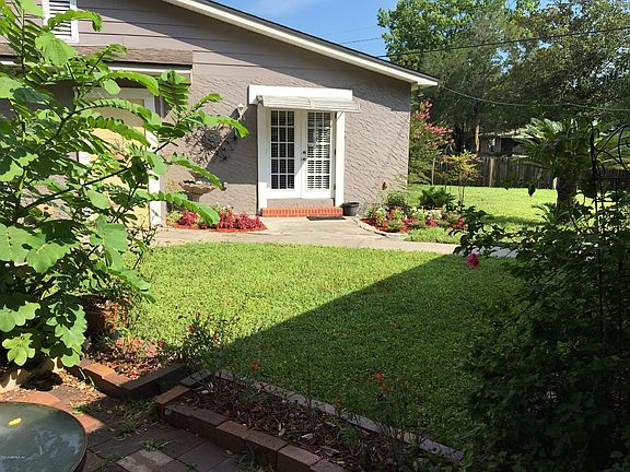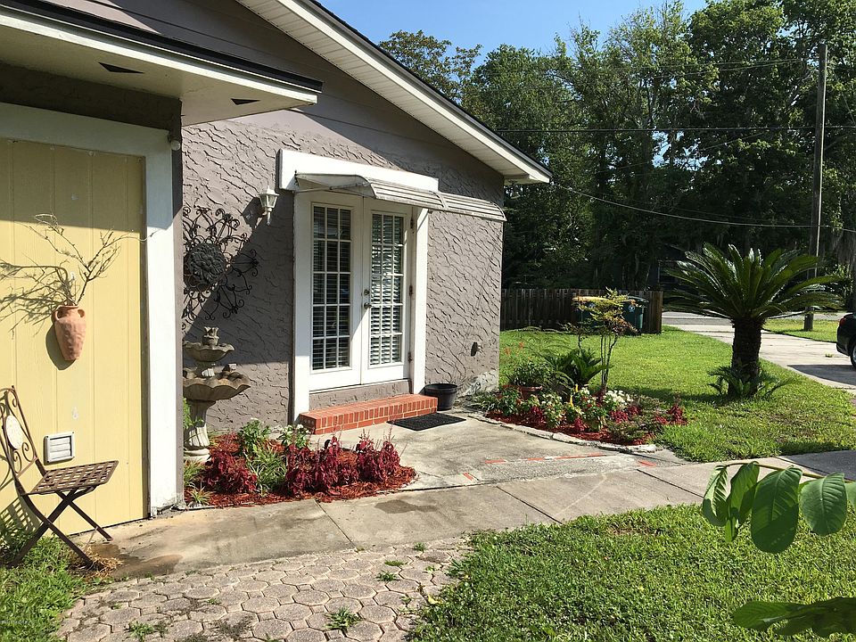 Nestled on a large corner lot with mature fruit trees and a garden area perfect for enjoying the summer evenings. This quaint concrete block home boasts 3 bedrooms, 1 bath and a large detached garage that has been converted to a game room (heated and cooled). The roof was replaced 5 years ago and the garage 1 year ago. Newly remodeled bath and the refrigerator, wash and dryer are included! This home is centrally located in the southside area. Minutes to St. Johns Town Center, Tinsel Town, Beaches and Downtown. This home recently passed a WDO inspection and has a transferable Termite Bond. Hurry! This gem won't last.