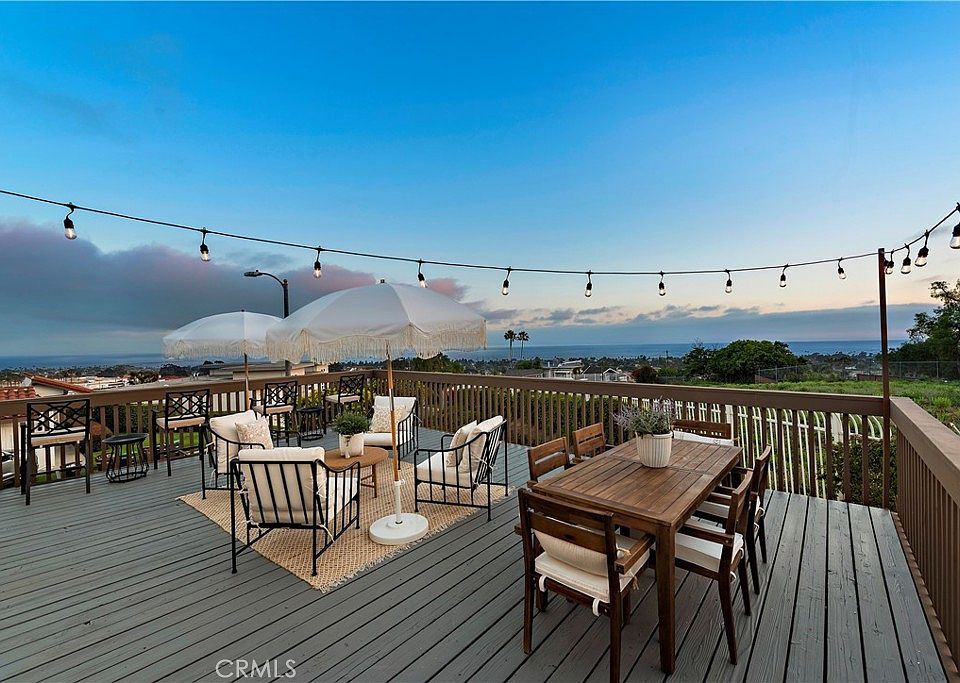Situated on a peaceful corner in the highly sought after Ocean Hills community of San Clemente, this remodeled 2 bedroom residence boasts spectacular ocean views and a unique oversized entertaining deck. The end unit features a light and airy reverse floor plan with the main living area on the second level and two en suite bedrooms on the first level. The main floor offers a Kitchen with brand new appliances, Dining area, and comfortable Living Room. Enjoy year round sunsets and dazzling panoramic ocean views from Cottons Point to the San Clemente pier all the way to Dana Point Harbor from the oversized deck. Positioned off the main living area, the deck is the perfect place to entertain a large party or to BBQ and relax while relishing the views. Head downstairs and find two en suite bedrooms with new bathrooms and both with access to the outside yards. The two car garage is attached and complete with epoxy floors, new lighting, and a nice laundry area as well as a spacious 2 car driveway. Appreciate brand new upgrades such as new flooring, new doors and windows, new lighting, new ceiling fans, and two new bathrooms. The Ocean Hills community has a variety of amenities such as swimming pools, a nine hole golf course, dog parks, basketball courts, social events, and a clubhouse. Close proximity to grocery stores and restaurants and easy access to the freeway. Only a few minutes to some of Southern California’s best beaches! Don’t miss the opportunity to own a premier ocean view home in San Clemente!