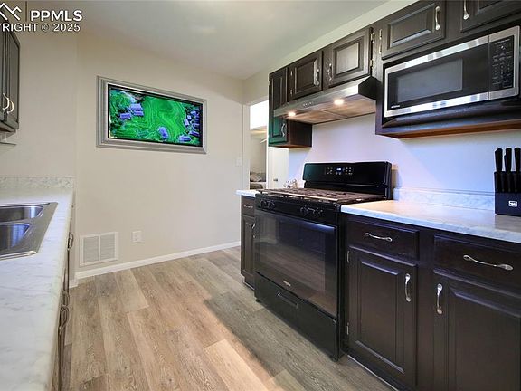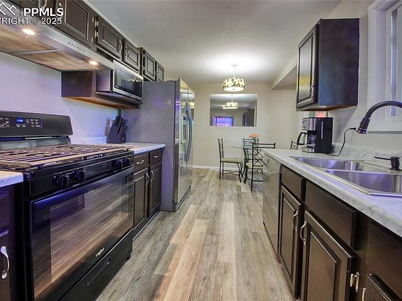 Awesome property features NEW 2025 interior paint and swamp cooler, and YEAR OLD 2024 furnace, hot water heater, electrical panel, gas stove, gas line in kitchen to service either gas or electric stove, kitchen range hood venting to outdoors, and main level bath exhaust venting to outside as well. This is the previous model home located in an established neighborhood offering a brick wood burning fireplace for cold night snuggling, and upgrades such as double paned windows and LVP tile floors. The location welcomes you with walking distance to schools and shopping...private backyard offers 16x8 storage shed with loft and a parklike setting complete with covered patio to shelter you from the sun, water fountain feature soothing to the ears, chiminea for warming up on cool evenings, and enclosed hot tub for relaxing...welcome home.