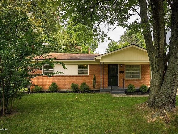 Recently updated, move-in ready brick ranch home situated on a flat lot with mature trees and fresh landscaping. Enter the home from the covered front porch into a spacious Living/Dining area with built-in shelving. The Kitchen, overlooking the fully-fenced back yard, is full of cabinets and is adjacent to the full-sized laundry room. Three bedrooms and a bathroom are off the main hallway, connecting the spaces. Interior updates include new carpet and paint throughout, light fixtures and ceiling fans. Plenty of covered parking space can be found outside with a detached two car garage plus a carport. The exterior trim, front door, front porch and garage have recently been painted, enhancing the curb appeal of this home! Conveniently located near Outer Loop and I-65, minutes to anywhere in town.Washer and dryer remain, furnace and air conditioner were serviced in August.