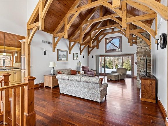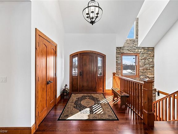 This exclusive custom ranch home was built with impeccable craftsmanship and an incredible quality you can feel throughout. Pride of ownership is evident when you discover the thought and care put into each room. The kitchen shows off beautiful cherry hardwood flooring, hickory cabinetry, granite countertops, and S/S appliances. Open to the dining room with a picture perfect view to the golf course. A generously-sized pantry closet separates the kitchen and mudroom where you'll find the laundry area, half bath, backyard entry & entry to the 3-car attached garage. All trim & doors were custom created with knotty alder wood. The great room boasts vaulted pine ceilings with white oak hammer beam trusses, a gas fireplace, & a view to the backyard that seems to invite the natural light in. Off this room is an extended covered stamped concrete patio overlooking the serene, wooded backyard. Primary bedroom features a tray ceiling, spacious closet and en suite bathroom w/electric radiant heated flooring, jacuzzi tub, & dual vanities. Two additional bedrooms have hall access to an updated full bath. Lower level is a finished walkout offering a kitchenette & a stone gas fireplace. There's a theatre room, workout room, & a half bath. You'll also find the 4th bedroom with a private full bath, heated flooring & a gorgeous tile shower. An additional 2-car detached insulated garage was built for the hobby enthusiast or extra storage. You'll want to see this home to truly appreciate it all.