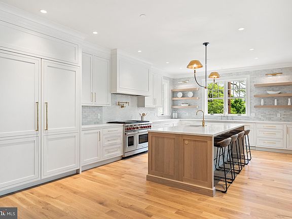 Sited on a quiet, private street in Chevy Chase, 3803 Jenifer St NW presents a colonial home of masterful craftsmanship and incredible scale. Recently remodeled in 2023 by GTM Architects and Zuckerman Builders, the residence features a perfect blend of modern amenities and timeless design notes, such as white oak flooring, wood-burning fireplaces, french doors, recessed lighting, designer selected light fixtures from Visual Comfort, and custom crown molding ceiling detail, throughout a well-appointed traditional floor plan. Boasting 6 Bedrooms and 5.5 Bathrooms across 4 Levels and 7300 square feet, a spacious island kitchen and entertainment salons span the Main Level while enviable private suites and bathrooms are perfectly appointed across the Upper and Lower Levels. The Primary Bath offers a spa-like oasis, including a free standing soaking tub, a spacious, curbless shower with a Graff rain and standard shower head, a private toilet room, and a towel warmer, with radiant floor heat and Calacatta Gold marble throughout. A heated 2-car attached garage, screened in porch and fenced rear yard with lush greenery complete the residence’s offerings. Within prime proximity to dining and shopping destinations, as well as local parks and recreation centers, 3803 Jenifer St NW offers the opportunity for idyllic, residential living in an unmatched locale.