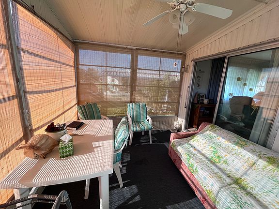 3803 Midway Drive Colony Cove, Ellenton, FL 55+ Community, Pet Friendly This home is on a rented/leased lot Check out this 2BR/2BA mobile home with a 10 X 12 front set lanai; perfect for watching the world go by! There is a sizable patio in the back of the home for enjoying the outdoors. The home is being sold partially furnished and partially turnkey. It comes with a 2-car carport and 8 x 10 shed. The shed has laundry hookups. The washer and dryer is included in the sale. The lanai has a ramp entrance, vinyl windows, carpet and a ceiling fan. The eat-in kitchen has a pantry and large bay style windows. It has custom cabinets, and it comes with an oven/stove, refrigerator and microwave. It has vinyl flooring. The large living room has carpet and a ceiling fan. In the hallway there is a storage/linen closet. The master bedroom has carpet, a ceiling fan, panel walls and a slide door closet. The master bath en suite has vinyl flooring, a single sink vanity, and a walk-in shower. The guest bedroom is large enough for king sized furniture and has carpet floors, panels walls and a closet. The hall bathroom has vinyl flooring, a single sink vanity and a shower/tub combo. The monthly lot rent is $862.75 and includes everything except for your personal electric use & Internet. Florida MH Sales, LLC cannot guarantee or warrant the accuracy of this information, measurements, or condition of any property. Measurements are approximate. All homes are sold "as is" and personal or professional inspection is encouraged. Lot rent is set by the community and is subject to change. All buyers must be approved by the community prior to closing on a negotiated sales contract. Location: Midway between Tampa & Sarasota & just minutes from the I-75 in Manatee County. Easy access to airports in Tampa, St. Pete & Sarasota. The Gulf Islands of Anna Maria, Longboat Key, Lido Key & Siesta Key are all less than 1 hour drive. Don't forget that the big theme parks are within driving distance! NEARBY: Dining: Waterfront Casual & Fine Dining (seafood & local catch of the day) & sightseeing dinner cruises. Nightlife & Live Entertainment: Tiki Bars: Whiskey Joe's, Woody's River Roo, Caddy's on the River Shopping: Ellenton Outlet Mall, University Town Center Mall, Costco, antique & thrift stores. Fishing & Boating: Anna Maria Island & Sky Way Bridge (State Park) Fishing Piers. Fishing, shelling & dolphin charters, parasailing & jet ski rentals. Nearby Attractions: Over 7 miles of free public, sugar sand beaches, Mote Aquarium, Science & Nature Museum, Railroad Museum, Performing Arts Theaters, Golf Courses & Country Clubs, Bradenton Convention Center, Robinson & Emerson Preserves, River Walk & Playground, Selby & Palma Sola Botanical Gardens, Gamble Plantation Historic State Park, Sarasota Jungle Gardens & Animals & Lowry Zoo plus much more!