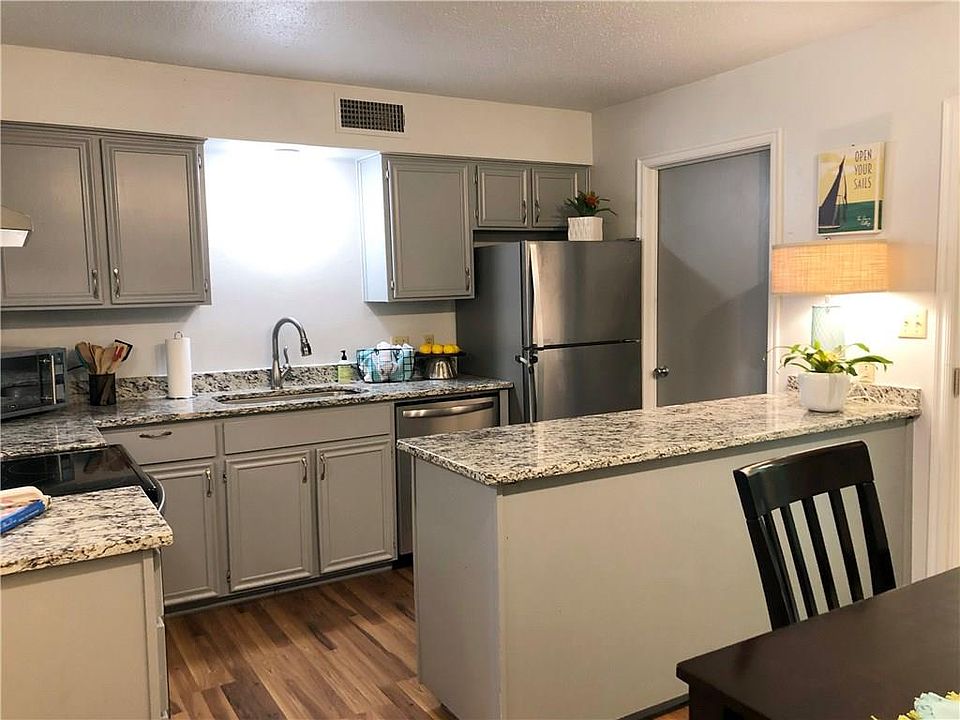 Why RENT when you can own a great Townhouse at this price!! Come check out this 2 bed, 1 & 1/2 bath townhouse in a super convenient location near Lake Hefner Parkway, 39th Expressway, hospitals, shopping, etc. The kitchen has been updated in 2019 with granite countertops, large single basin stainless sink, Stainless Steel appliances and freshly painted grey cabinets and walls. The refrigerator can remain with New French doors open to the private patio and cozy gated back yard. There is even a large laundry room with extra storage space just off the kitchen.. The downstairs guest bath and the upstairs full bath also have new granite countertops. Also a new storm door on the front!! Both bedrooms are upstairs and have fresh paint as well. The master has a walk in closet and an adjacent, small dressing nook. The HOA pays for exterior maintenance and trash service.