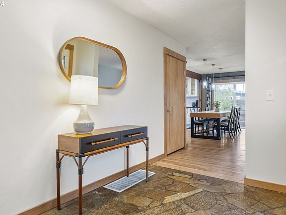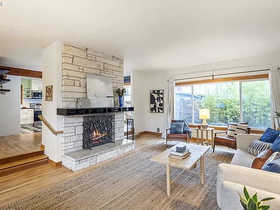This updated and move-in ready mid-century ranch home sits on a large corner lot with multiple outdoor spaces to enjoy and low maintenance landscaping. Step inside this carefully updated light-filled home and you'll be greeted by natural stone and oak hardwood floors with the open floor plan we're all searching for. Living room features a wood burning fireplace and large windows. In the open kitchen you'll find quartz countertops, granite and marble tile flooring, newer stainless appliances, and direct access to the large back patio. Three bedrooms on the Main floor include one of two Primary ensuites, two full bathrooms and built-in storage. Basement has been fully finished with style and comfort in mind and boasts a private exterior entrance. The possible uses for the Second Primary or Entertainment Room are endless, featuring a second wood burning fireplace and lots of natural light. The ensuite bath is a show stopper with an oversized custom walk-in shower, ample closet system, and w/d hookups. Full laundry room located on Lower includes newer cabinetry and large countertop. Bonus bedroom on Lower is perfect for home office or playroom. Mature trees and lush greenery provide shade and privacy in the fully fenced back yard which is made complete with solid wood play structure, planter boxes, and new gravel pad perfect for an above ground pool. Backyard wraps around to the back patio and another side yard where you’ll find a shed with built-in shelving and a very healthy fig tree. Parking area is perfect for RV parking or everyday use and includes an electric vehicle charging outlet. Located just minutes from I5, mass transit and all the conveniences of N Lombard, N Denver and downtown St. Johns! All of this with a HES of 7. [Home Energy Score = 7. HES Report at https://rpt.greenbuildingregistry.com/hes/OR10221680]