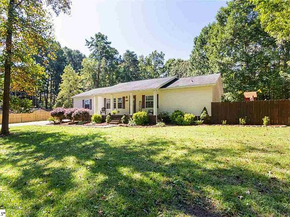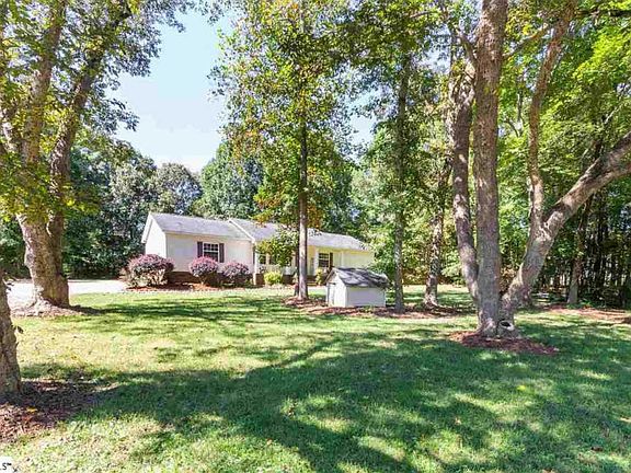 Single story living on an acre of land. This 3 bedroom 2 bath ranch home is just minutes from interstate 85 but still has a country feel. The split floor plan allows for plenty of privacy in the owners suite and an open living/dining experience. The owners suite has a large walk-in closet and a owners bath with double sinks, separate shower, and a garden tub. The kitchen features stainless steel appliances and tons of counter and cabinet space. The dining area has beautiful built in cabinetry for plenty of storage and display items. The other two bedrooms offer walk-in closets and the bath has a tub/shower combo. Outside is a large fenced in back yard, a huge deck, and a storage building with electricity. The front yard is beautifully landscaped and offers a nice view of several mature pecan trees. The driveway is long enough to accommodate several cars and the side area of the driveway offers an area for easy turn around.