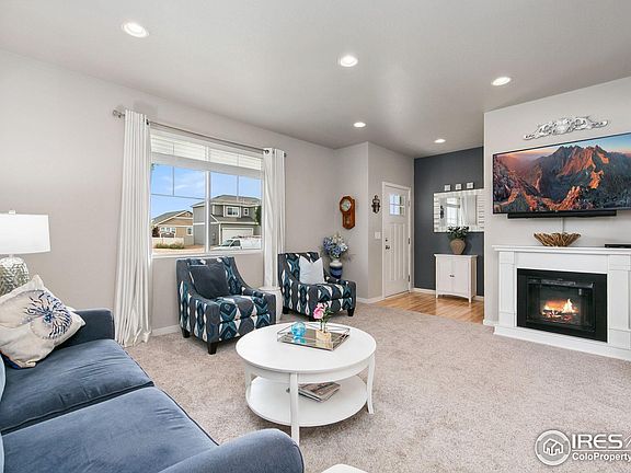 PRICE IMPROVED! Are you looking for big value in small town living? Come make 3803 Peach your new home then! Large corner lot that needs nothing but your personal touch to make it home. Modern Farmhouse styling throughout this well-designed Hartford floorplan. Open main floor with family room, kitchen and dining makes entertaining and daily living comfortable and cozy. White kitchen cabinets with updated hardware & lighting give it a fun farmhouse vibe. Upstairs you'll find a nicely sized primary bedroom with views of the foothills and mountains, generous bathroom space and a walk-in closet. A convenient laundry room, two more bedrooms, and a great loft that is perfect for an at home office or hobby space make the upstairs very functional. Full unfinished basement for future expansion. Oversized two car garage is 26 feet deep - you can park a full sized truck or SUV and still have plenty of room for storage or hobby space! Driveway is deep as well. Landscaping & fencing are done and maturing nicely so you get to enjoy this large corner yard year around. Low monthly HOA fee includes non potable water for lawn watering. Neighborhood pool & park is a great community amenity only three blocks away! Come find the good life in Harvest Village!