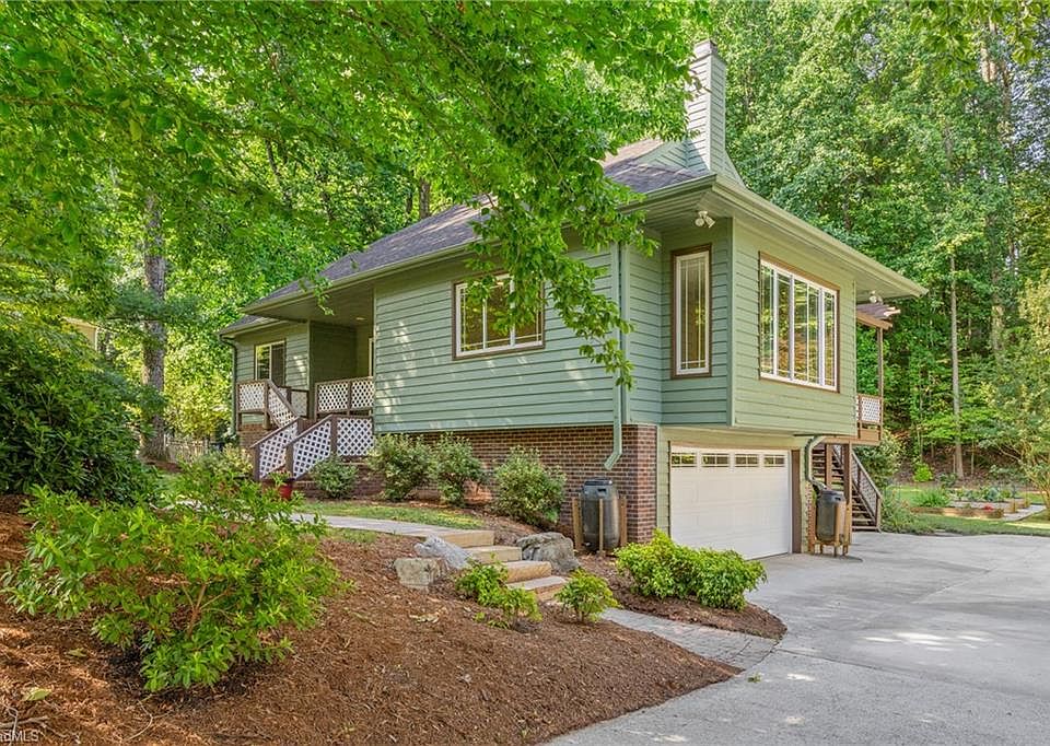 You'll feel like you're coming to your home in the mountains as you approach this beautiful contemporary surrounded by trees on a large lot nestled in the heart of Greensboro. Current owners have lovingly maintained & updated their home, making it move-in ready for new owners. Main level includes huge 19x19 sunken great room w/ two walls of windows, updated cook's kitchen w/ gorgeous granite and high-end SS appliances, & spacious primary bedroom w/ updated ensuite bath featuring large shower & separate soaking tub. Another bedroom on this level could serve as an office, nursery or guest space w/ an adjacent full bath. Off the kitchen is a screened porch & deck overlooking the private backyard. Upstairs are two additional bedrooms w/ a Jack & Jill bath updated w/ imported Italian tile. Side entry basement garage has interior access to home, newer garage door & opener, & unfinished space for workshop or storage. Entire exterior & much of interior freshly painted. Come see this one today!