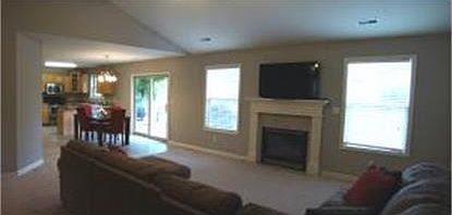 Open floor plan with new carpeting and paint. Gas fireplace and covered deck with additional outdoor deck entertainment area overlooking level fenced backyard. Large master with double vanity and walk in closet. Community pool and close to trail and dog park.