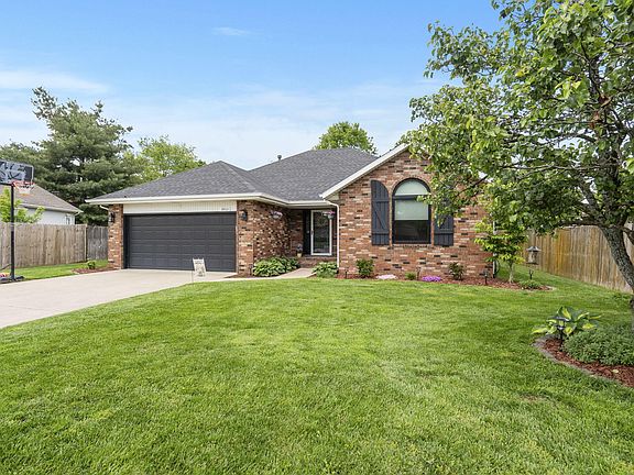 All brick single-story home in Kay Pointe Subdivision! This well-maintained home is in Willard School district and features 3-bedrooms, 2-bathrooms, an open floor plan, and beautiful backyard. Inside, enjoy a bright living room with oversized windows and a kitchen with granite counters, stainless appliances, and bar for seating. The primary suite offers tray ceilings, a dual sink vanity, soaking tub, and walk-in shower. 2 more bedrooms, one with vaulted ceilings, share a full hall bathroom. The relaxing backyard has a spacious patio, partially covered, full privacy fence, and wooden storage shed. Kay Pointe Subdivision includes a pool, playground, basketball + tennis courts, and a covered pavilion. Located within close proximity to Rutledge-Wilson Farm Park and highway access. This one won't last long!