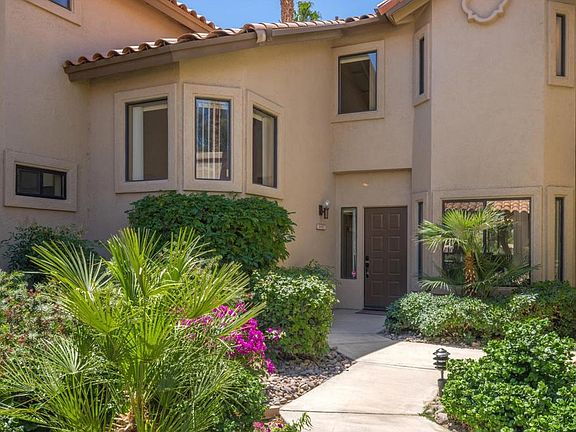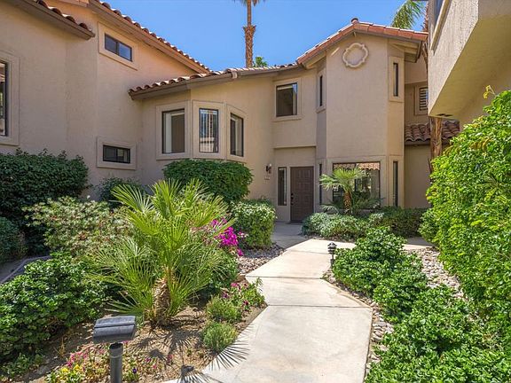 Experience the good life at Palm Valley Country Club! This meticulously maintained 1515 sqft condo features two charming bedrooms and stunning southern views. With a strong rental history, this home doubles as the perfect second paradise or investment property. The main lower level boasts cozy vibes with a kitchen, breakfast nook, dining room, living room, powder room, and fireplace - the perfect setting for chilly winter nights. The upstairs features two bedrooms, each with their own balcony for an even better view. Entertaining loved ones is a breeze on the private covered back patio, complete with a built-in BBQ for grilling and fabulous views of the fairway, lake, and mountains. Centrally located in Palm Desert near the interstate, airport, and El Paseo's superb restaurants and great shops. Home is being sold furnished per inventory list. Don't miss out on your chance of paradise, call now to schedule a private tour!