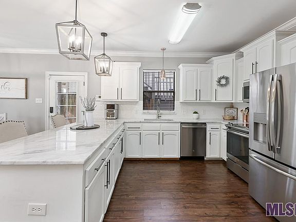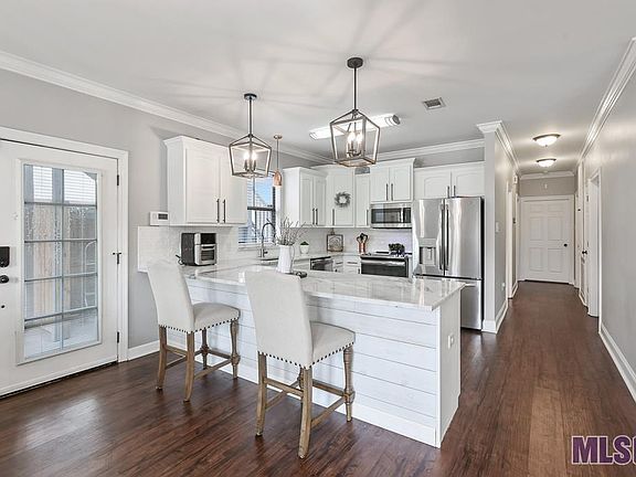 You've got to see this amazing ground-floor condo right in the heart of Prairieville! Sip your morning coffee on the lovely covered patio and take in the picturesque views of the pond and community pool. This home offers a pristine and roomy 3 bedroom, 2 bathroom layout. The large kitchen boasts plenty of natural light with painted cabinets, new hardware and appliances. The updated vinyl wood floors make cleaning a breeze, and marble countertops in the bathrooms add to that modern look. There's ample storage throughout, including a spacious laundry room. Don't forget the new AC and Flood Zone X add to your peace of mind. Situated in a quiet and secure gated community, this low maintenance property is great as your home or investment! Schedule your appointment today and seize this opportunity!