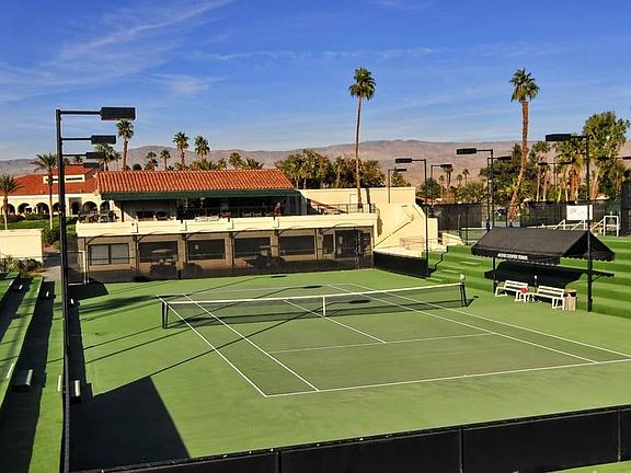 Single story 2 bedroom, 2 bath condo on the golf course with an incredible 180-degree view of the Santa Rosa Mountains. You get both the sunrise and sunset from the living room, or right on your patio. Palm Valley Country Club is a secure gated community and well-known for being one of the friendliest and most activity filled communities in the desert. Swim in one of the many pools/Jacuzzi's, play golf or tennis, eat and enjoy drinks at the beautiful clubhouse bar or restaurants, workout in the weight or cardio room, walk around the complex with your neighbors, or relax in the spa.