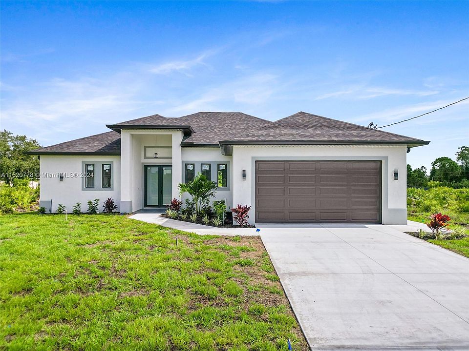GEORGES NEW CONSTRUCTION HOME!!! Modern, elegant, and sophisticated. 3 bedrooms + Den, 2 bathrooms, 2 car garage. Big kitchen island, brand-new stainless-steel appliances, and calacatta quartz countertops in kitchen, baths and laundry room. This beautiful property offers an abundance of features of LED in the entire house, impact-resistant doors and windows, an outdoor kitchen, epoxy floor in the garage. The backyard offers plenty of room for pool and outdoor activities, has a great open concept with imported porcelain tile throughout, easy access to Fort Myers, 10 minutes from RSW International Airport, shops etc... Sprinkler system and much more.