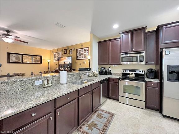 INCREDIBLY WELL MAINTAINED and PRICED TO SELL! Call today to schedule your private showing of this 3 bedroom, 2.5 bath townhome, with attached 1 CAR GARAGE and nearly 1600 sq ft under air! Kitchen is a cook's delight with hard wood cabinetry, granite countertops, expansive breakfast bar, pantry & stainless appliances. Living area, with all tile floors, opens to SPACIOUS PAVERED LANAI equipped with ELECTRIC HURRICANE SHUTTER. Just outside lanai you'll LOVE the EXTENDED OUTSIDE PAVERED PATIO WITH GORGEOUS LANDSDCAPING including three triple palms! Upstairs boasts 3 bedrooms & two full baths. Warm neutral carpet upstairs w/ tile in wet areas. GORGEOUS MASTER SUITE with walk-in closet and well-appointed bath w/ walk-in shower. Expansive driveway has also been equipped with in-ground lighting. Home has only been used seasonally by owners ~ and it shows! STEPS to the clubhouse with pool, spa, fitness center & play area! Best of all, you are minutes to a myriad of shopping & dining options. ATTENTION~HIGHEST AND BEST OFFERS DUE BY 8:00 P.M. ON 1/11/2022. OFFERS WILL BE REVIEWED ON 1/12/2022