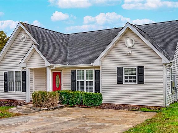 Cute one level home sitting on a quiet cul-de-sac in the beautiful Fox Hollow neighborhood in the Adams Farm community. This 3 bedroom/2 bath home features a split bedroom floor plan with lots of natural light and neutral paint throughout. Large great room with vaulted ceiling and gas log fireplace. The primary suite has a large walk-in closet and private bathroom. The two additional guest bedrooms both have walk-in closets and share a hall bath with a tub/shower combination. Refrigerator to convey. Patio overlooks the large, flat backyard with storage building. Close proximity to grocery shopping, restaurants, highways and of course the beautiful Adams Farm park complete with walking/biking trails.