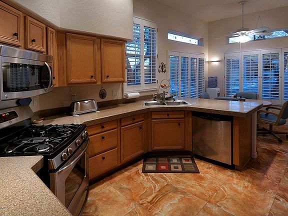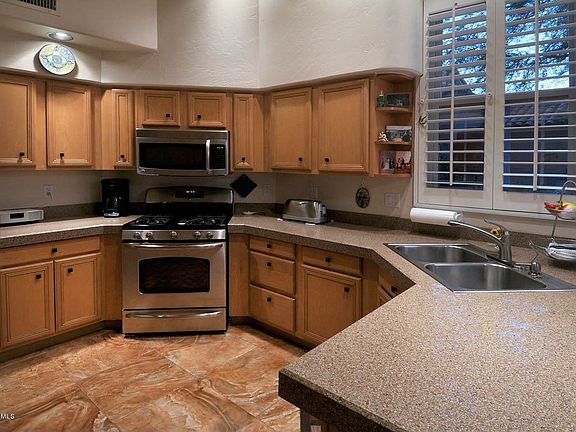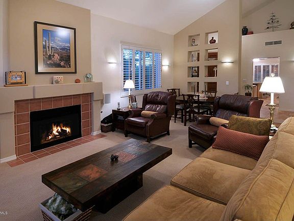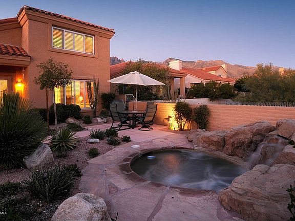 For more information on this property, contact the Listing Agent, Janell Jellison at (520) 918-5469 or JanellJ@Mindspring.com. On La Paloma golf course w/sparkling city lights, sits this tastefully updated patio home w/master suite on main level and 2 bedrooms upstairs. Plantation shutters, new tile, new appliances, new HVAC and NO poly! Replumbed! Home has high ceilings and gas fireplace in greatroom. Lovely patio w/spa, low care vegetation and water fountain, very private, quiet and serene setting.