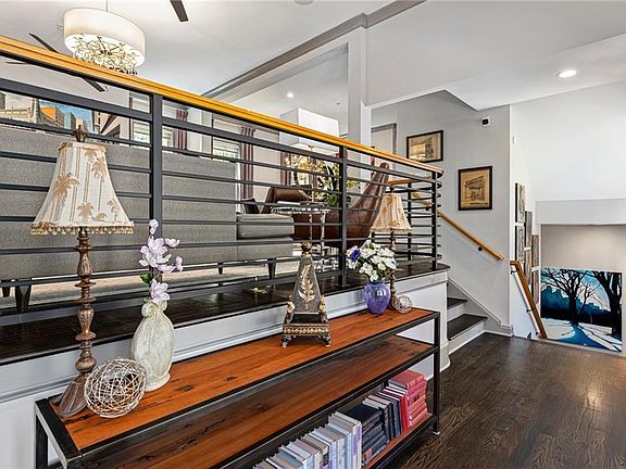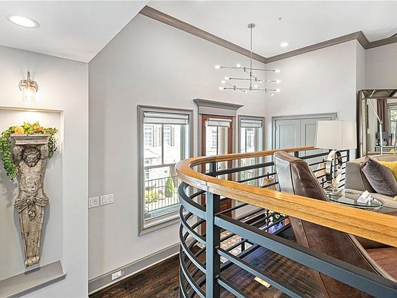 John Weiland built turn-key, lock-and-go custom built 4/4.5 dream home. End unit at end of private street in desirable gated community. Unlike typical townhomes, this is a home w/very unique features. Unmatched natural light from 48 windows. Privacy w/minimal connection to other units, large private yard, 3 car garage (!), up to date wired smart home w/up to 4 Theater rooms. One of a kind covered outdoor entertainment sky deck w/city views, fireplace, speakers & TV wiring & E & W exposures for great outdoor living. Large covered southern front entry porch. Main floor features large living room & fireplace separate DR magnificent designer kitchen w/all amenities-48" gas cooktop 42" counter depth refrigerator separate wine fridge, double-ovens & microwave. Anchored by an oversized island with sink, seating 4-5. Also on main is large casual dining space, huge keeping room w/backyard access, & beautiful 1/2 bath. Dedicated pantry, wine bar, many storage areas. All the floors are Hardwood! Private elevator services all 4 levels! Wide, open, bright open stairways. Large Master Suite upstairs w/2 walk-in closets, amazing ensuite bath, and 2nd BR w/ensuite bath. Large, bright laundry room w/sink on this floor. Top level setup as private suite or man/woman cave, in-law suite, or au pair suite- now used as media room and office. Another large bedroom w/ensuite and a Mini-kitchen are also on this level. Top level accesses the amazing outdoor living sky deck with open E&W exposures! Lower level has huge, legal bedroom, great ensuite & walk-in closet. Downstairs also houses finished media closet for all smart home access plus additional storage. Lower level accesses large THREE car garage. This home must be seen, it is where you can live a luxury lifestyle surrounded by great neighbors, with community pool, gym, clubhouse-and all nestled close to walkable shops, restaurants and all Vinings has to offer! Don't miss this one, it won't last.