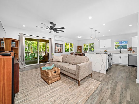 Take advantage of this opportunity to own your own home here in West Maui. This home shows as new, new new!!! 3 bedrooms, 2 baths, with the sweetest outdoor deck in the private backyard setting. The open kitchen, dining and living area leads out to the back covered porch for more entertaining and enjoyment. The side yard is a great area for outdoor yard play, eating outside, or a grassy area for the pets. The baths have floating cabinets and tiled showers for a nice clean aesthetic. A white quartz stone countertop with a waterfall edge for the island add to the new modern feeling. This house comes fully furnished and even includes a car as part of the package. This is a cpr'd home and shares a water meter and common driveway.