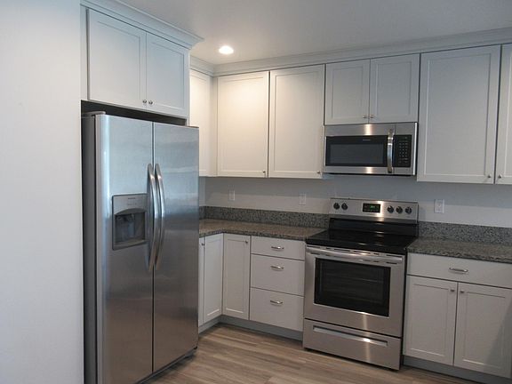 Newer single story duplex unit. Range, refrigerator, dishwasher. Hook ups for washer and dryer. Gas heat + gas log fireplace. One car garage Water, sewer, garbage and yard care paid. No smoke/no pets
