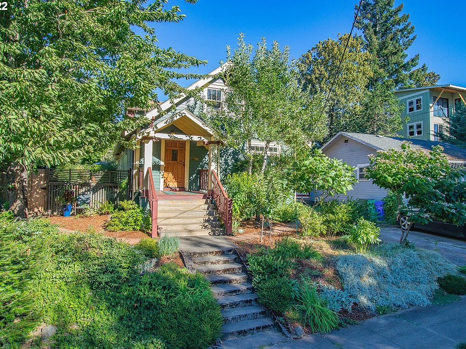 Lovely Craftsman Home & Gardeners Oasis. Approach to lush greenery & covered front porch. Soaring high ceilings & wood floors. So much character. Light, bright & airy w passthrough breeze. Formal dining. Updated kitchen features quartz counters, stainless appliances & breakfast room. Upstairs second master suite / separate living quarters w solid STR Airbnb history. Huge basement space w potential for ADU. Newer furnace. Custom patio & studio wired with 220. Click Vtour for 3D tour & more! [Home Energy Score = 1. HES Report at https://rpt.greenbuildingregistry.com/hes/OR10204250]
