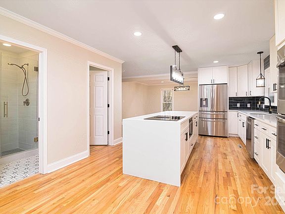 Discover refined living at this beautifully updated 4-bedroom, 3-bathroom home in the heart of Mint Hill. With over 2,700 sq. ft. of thoughtfully designed space, this traditional home combines timeless charm with modern luxury. The gourmet kitchen features sleek countertops, an oversized waterfall island, and stainless steel appliances, while the spacious living areas showcase hardwood floors and an inviting fireplace. Indulge in spa-like relaxation in the fully renovated bathrooms, complete with a soaking tub and glass-enclosed showers. Situated on a private 0.74-acre lot, the property offers serene outdoor spaces perfect for entertaining or quiet retreats. Home has been connected to city sewer.
