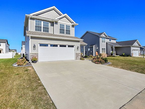 This 4 Bedroom, 3.5 Bath Home was finished in 2021. What was started as a 3 bedroom 2.5 bath, 2 Story Home, has had the basement Fully Finished with Family/Rec Room, 4th bedroom with 2 closets (one a large walk-in for additional storage or prayer/study space, and 3rd Full Bathroom. The home greets you with inviting front porch and the rear yard allows for continued invitation to relax outside on its rear patio right off the kitchen for convenience. Its 1st Floor allows flexible living spaces. Currently, the home is arranged as a Formal dining space open to a family room with gas long fireplace, which is open to fully applianced eat-in kitchen with Granite Counter tops, pantry and center island. However, formal dining area makes for addition sitting or wonder space for a music room. All of the 1st floor has beautiful hardwood floors except the great drop zone and 1/2 bath off its 2 car attached garage. Drop zone and 1/2 bath have tile. The 2nd Floor offers a Large Primary suite with Private Bathroom with Dual Vanities & Linen closet, as well as, large walk-in closet. There are 2 more bedrooms, a2nd Full Bathroom with Dual Vanities, and Laundry Room for added convenience. This home is located just one block from the neighborhoods wonderful Sunset View Park with pickleball and basketball courts, large playground assembly and walking paths equipped with relaxing benches. In less than 10 minutes of this home are groceries, restaurants, shopping, Parkland College and entrances to 3 major interstates. It is 15-20 minutes from area major businesses, medical care facilities, and University of Illinois campus.