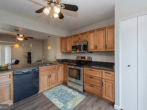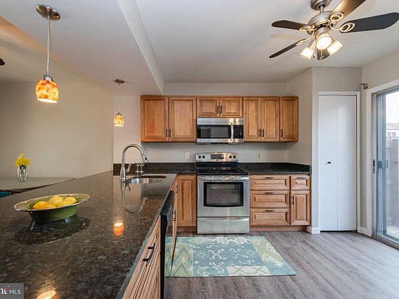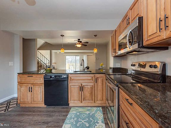 Beautifully updated townhome includes kitchen featuring black and stainless steel appliances, granite counters, ample cabinetry and breakfast bar with modern pendant lighting overlooking fenced front patio. Open concept dining and living area feature a cozy wood burning fireplace and sliding glass door to sizable deck with wooded stream view. 3 comfy bedrooms on upper level including Owner~s suite with large double closets and private full bath. Finished lower level featuring Rec Room with walk out patio and utility room with plenty of storage and workbench.