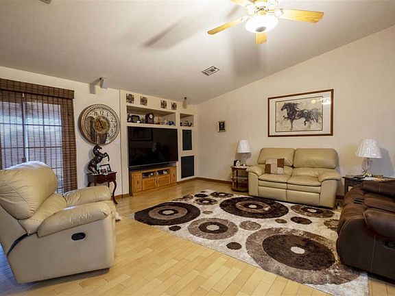 Charming 3 bed/2 bath Solar home in desirable Falls Ranch! This beautifully-renovated home includes vaulted ceilings, an open floor plan and tile throughout. Gourmet kitchen has granite countertops and a breakfast bar overlooking the adjoining living and dining room. Master bedroom has an en-suite bathroom featuring a full shower, jetted tub nestled beneath a custom stained glass window, and HUGE walk-in closet! Backyard is perfect for entertaining with an outdoor kitchen and large grass area. Must see!