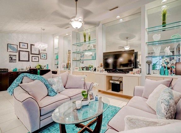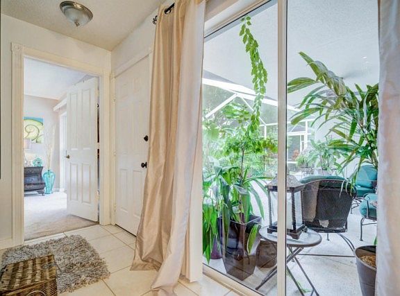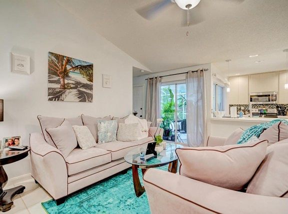 This charming, coastal chic 2/2 DiVosta built villa in Sun Terrace at The Oaks features cathedral ceilings, custom built in, a split bedroom floorplan, perfect for guests or family, sliding glass doors from both bedrooms, kitchen and living room leading to the huge screened patio, perfect for entertaining! Stainless steel appliances, glass backsplash in kitchen and guest bath and more! Immaculate move in condition.