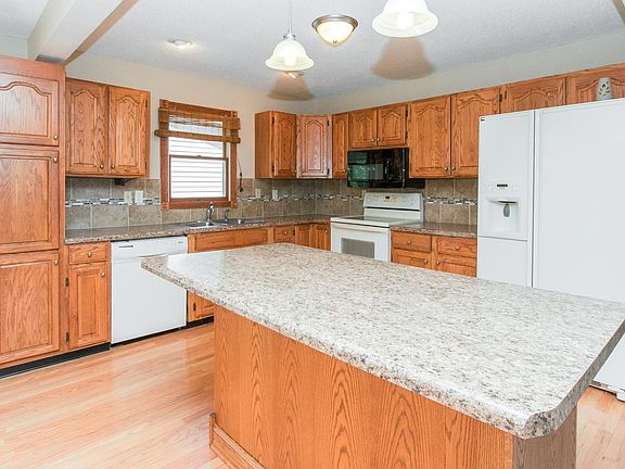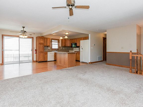 Move in ready with updates; remodeled kitchen and bath, newer carpet, roof and sump pump. Kitchen has newer counters, breakfast bar, appliances, sink, faucet, lighting, backsplash, pantry and hardwood floors with slider to deck. Oversized 2 stall garage. Deck off back and fenced backyard.