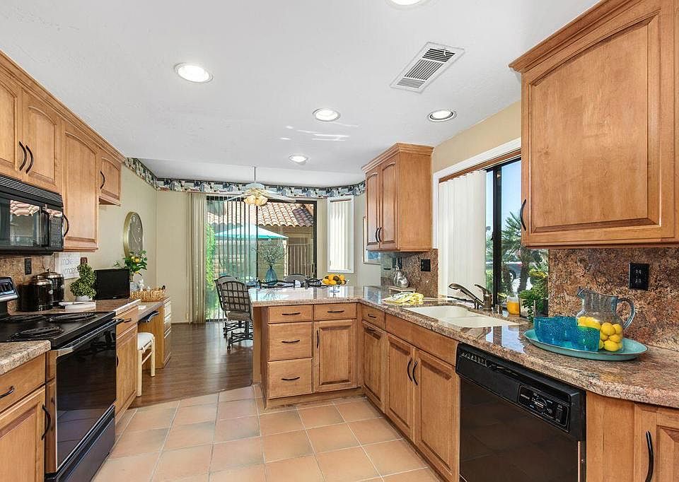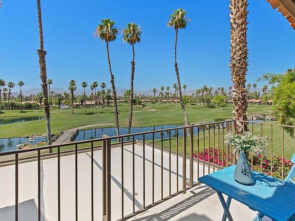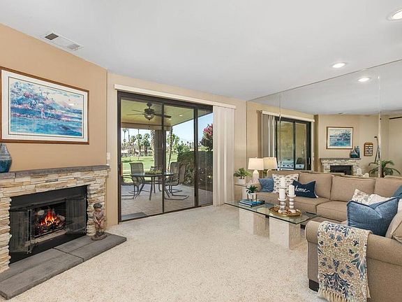 Are you ready to embrace the ultimate desert lifestyle? Imagine waking up in the luxurious golf gated community of Palm Valley Country Club in the heart of stunning Palm Desert - where sunrises paint the sky and every day feels like a getaway. Step into this 1,555 sq.ft. desert oasis where pride of ownership shines in every detail. This turnkey furnished 2 bedroom, 3 bath condo is a sanctuary of style, comfort and elegance. Newer granite countertops, newer bathroom sinks, a stunning stone gas fireplace., a chic wet bar for entertaining, and a newer HVAC system installed. Step outside and feel the magic of the desert breeze as you start your day with coffee on your private patio off the kitchen. Enjoy breathtaking views of the lake, majestic mountains, and lush golf course from the balcony patio of the primary bedroom. Palm Desert Country Club offers a resort-style experience with two championship 18 hole golf courses, a gorgeous clubhouse, state of the art fitness center, tennis and pickleball courts, and 48 sparkling pools and spas scattered throughout. Interested in short-term rentals? This community allows them. Come see this dream desert retreat today, and let the warmth of Palm Desert welcome you home.