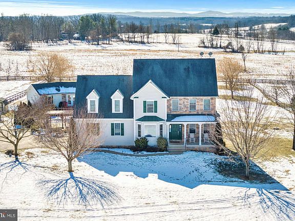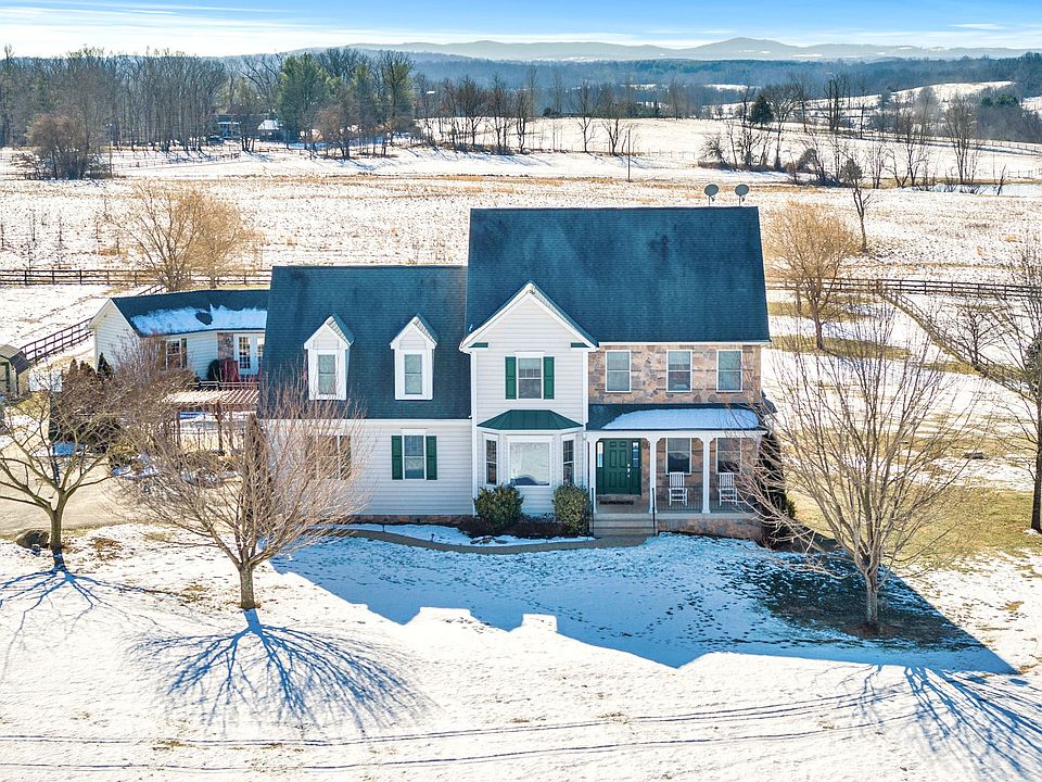 Stunning 5 bedroom, 4.5 bath home with swimming pool surrounded by mountain views sitting on 3+ acres! This inviting home offers gleaming hardwood floors and plentiful natural light throughout. The spacious main level features an open floor plan, office with barn doors, gas fireplace, coffered ceilings, breakfast room with skylights and much more.~The beautiful kitchen is complete with granite countertops, premium cabinets, double ovens and a breakfast island. En suite master with soaking tub, double vanities, and walk-in closets. Huge finished basement rec room! Step outside to to the expansive patio overlooking the private swimming pool. The 1 Bedroom/ 1 Bath rentable guest house ($1,200/mo) is included! Well and Septic. 2-car side load garage. Located in a quiet neighborhood, yet close to town.