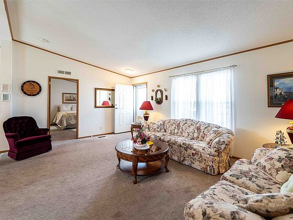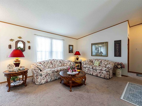 Well maintained manufactured home. Open concept kitchen-dining with vaulted ceilings. Primary bedroom ensuite with garden tub and separate shower. Shed included. Impressive property situated with easy access from park entrance. Double parking pad for off street parking.