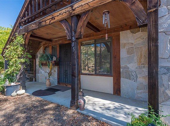 - Exterior features: Stone, Wood