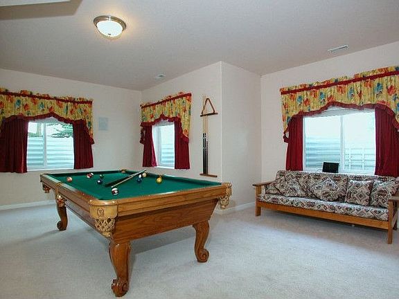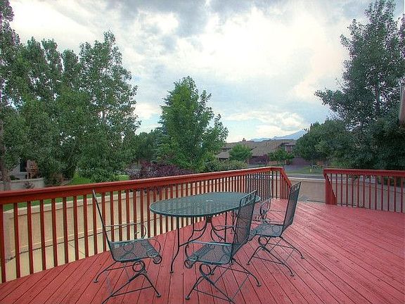 This beautiful, large family home is in Kissing Camels - a gated golf course community in Colorado Springs. Lease length negotiable with one week minimum. Rent varies from $3K/mo to $6K/mo based on time of year and length of stay - $5K is the average. This custom home has five bedrooms, a Master BR Suite, a main level study, a family room with home theater, wet bar & pool table, as well as a wonderful yard. The main level floor plan has a Great Room with a fireplace and vaulted ceilings; a large kitchen with an island, wet bar, breakfast nook and walkout; a formal dining room; laundry room; and a study with fireplace. The main level master suite offers a fireplace, walkout, walk-in closet plus an adjoining 5-piece bath which shares the double-sided fireplace. The upper level includes separate central air and has three additional bedrooms all with adjoining baths and walk-in closets. In the lower level is a family room with home theater, fireplace, wet bar, one additional bedroom and ample storage space. This home features four fireplaces and a very open floor plan. A community recreation center with swimming pool & tennis courts is only 150 yards away. The golf course club house is about 1/4 mile away.Length negotiable with one week minimum. Rent varies from $2K/week to $3K/week based on time of year and length of stay. Additional deposit for pets. Furnished. Great for AFA and CC Graduations. Owner is 1973 AFA Grad & retired Air Force. Rented through August 28, 2014 except for May 15 - 31.