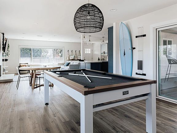 Welcome to your modern coastal retreat in the heart of Ocean Beach! This fully remodeled 3-bedroom, 2-bathroom home has been thoughtfully designed with high-end furniture, designer finishes, and a seamless open floor plan that invites effortless indoor-outdoor living. Sliding glass doors connect the living spaces to both front and back decks, creating the perfect flow for entertaining or relaxing. The gourmet kitchen features an oversized island, stainless steel appliances, and ample storage, opening to the spacious living room with a pool table, large-screen TV, and plenty of seating. The primary suite offers a spa-like bathroom with a dual shower, while two additional bedrooms provide flexible accommodations for family and guests. Outside, a true backyard oasis awaits, complete with a covered jacuzzi, propane BBQ, outdoor dining and lounge areas, turf game zone with bocce, corn hole, and ring toss, as well as string lighting for magical evenings. Additional highlights include central A/C and heat, EV charger, 2-car garage plus driveway parking, laundry, fast WiFi, and kid- and dog-friendly amenities. Ideally located just minutes from the beach, Ocean Beach pier, dining, shopping, and surf, this home offers the perfect blend of modern comfort and coastal charm. Welcome to your modern coastal retreat in the heart of Ocean Beach! This fully remodeled 3-bedroom, 2-bathroom home has been thoughtfully designed with high-end furniture, designer finishes, and a seamless open floor plan that invites effortless indoor-outdoor living. Sliding glass doors connect the living spaces to both front and back decks, creating the perfect flow for entertaining or relaxing. The gourmet kitchen features an oversized island, stainless steel appliances, and ample storage, opening to the spacious living room with a pool table, large-screen TV, and plenty of seating. The primary suite offers a spa-like bathroom with a dual shower, while two additional bedrooms provide flexible accommodations for family and guests. Outside, a true backyard oasis awaits, complete with a covered jacuzzi, propane BBQ, outdoor dining and lounge areas, turf game zone with bocce, corn hole, and ring toss, as well as string lighting for magical evenings. Additional highlights include central A/C and heat, EV charger, 2-car garage plus driveway parking, laundry, fast WiFi, and kid- and dog-friendly amenities. Ideally located just minutes from the beach, Ocean Beach pier, dining, shopping, and surf, this home offers the perfect blend of modern comfort and coastal charm.