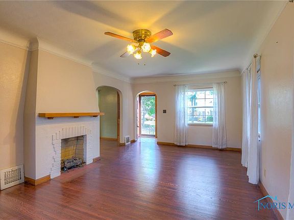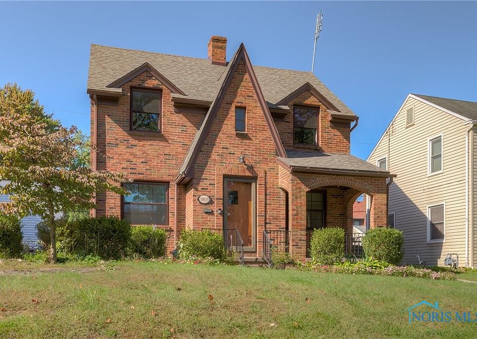 This well-maintained all-brick home in West Toledo provides the historic charm of yesteryear with modern updates. Enjoy the formal living room with fireplace, dining room with built-in china cabinet, beautifully re-finished hardwood floors throughout, 3 bedrooms, 1.5 baths, partially finished basement with custom built-ins, a lovely covered front porch, and a garage with fenced back yard. Located in a quiet neighborhood near a park. Updates include: roof (’22), remodeled bathroom with tile (’21), garage door (’21), windows (’15), freshly painted kitchen cabinets.