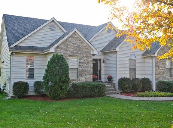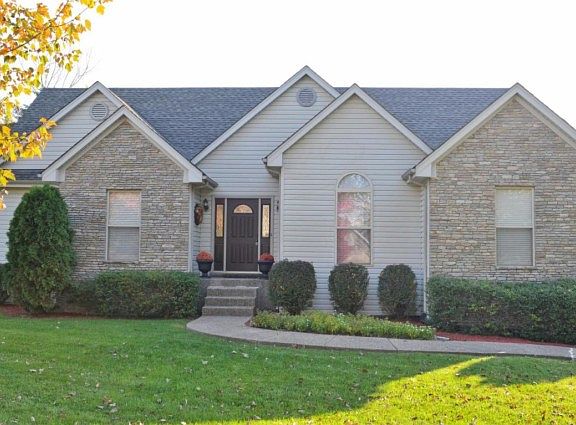 ** Located near the end of a quiet CUL-DE-SAC **, you will love the curb appeal of this home the moment you drive up! This lovely home sits beautifully on a Super Private 1.09 ACRE lot that backs up to a farm. HARDWOOD FLOORING (real "sand-in-place hardwood!) graces the Foyer, Great Room, Formal Dining Room, Kitchen, and Hallway. Just off the Foyer is a very pretty FORMAL DINING ROOM with a chair railing, and large "floor-to-ceiling" window. Center stage is an attractive light fixture. You will especially love the CATHEDRAL VAULTED GREAT ROOM. Lighted paddle fan. Pretty fireplace with gas logs. A NEW glass door opens off the Great Room with an ENORMOUS NEW DECK (replaced in 2015 and freshly stained October 2015). Off the Great Room is a beautifully * LIKE NEW * DINE-IN KITCHEN, remodeled in 2011, and included NEW CABINETRY, "GRANITE-LOOK" counter tops, and NEW APPLIANCES: Smooth top stove, built-in microwave, dishwasher. (Refrigerator is negotiable with acceptable offer). The "Step in" Pantry offers plenty of extra kitchen storage. A bay window (with a tall "dome ceiling") in the Breakfast Area overlooks that incredible back yard! First Floor Laundry Room. The MASTER BEDROOM is quite spacious, offering two large windows and a DEEP WALK-IN CLOSET. You will LOVE the pampering MASTER BATH with BRAND NEW "marble-look" CERAMIC TILE FLOORING (October, 2015), an inviting WHIRLPOOL TUB and SEPARATE SHOWER with a NEW shower door. Private lavatory. The other two bedrooms are also spacious and offer great closet space. The WALKOUT LOWER LEVEL is wonderful FAMILY ROOM space as well as office space. There is plenty of UNFINISHED STORAGE SPACE AS WELL (Access to the unfinished space is through a door off the GARAGE. And speaking of GARAGE this home has a DEEP * 3-CAR GARAGE ! * Other features of this home include: * NEWLY RESURFACED DRIVEWAY (October 2015) * *Lovely Front Door (with side lights) replaced in 2009 * * NEW ROOM in 2012 * * NEW WATER HEATER in 2014 * *A/C Mother Board replaced in 2014. OUTDOORS: Large spacious back yard offers a winding creek with a wooden bridge. On the other side of the creek is an ENORMOUS fenced area for a vegetable garden! The fencing may stay or can be removed by the Sellers. Backs up to a farm. You will not find this much home for the money in all of Oldham County! Near great AWARD-WINNING Oldham County schools. Both Crestwood and LaGrange amenities are nearby as well. Enjoy all the great shopping and fun events in DOWNTOWN LAGRANGE. If you love to find local produce, shop LaGrange's Farmer's Market. At Christmas, enjoy LIGHT UP LAGRANGE! Such a wonderful location. You will love living in Oldham County. ONE YEAR HOME WARRANTY!