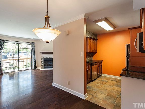 Location, location, location. Move-in ready two bedroom, two bathroom condo located in the Chimney Ridge area of Woodcroft. Freshly painted with wood floors throughout family room and dining area. Walk-in closet in the master bedroom. Ground level. Includes a wood burning fireplace and plenty of natural light. Enjoy Woodcroft amenities including walking trails and pool.