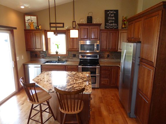 SALE PENDING 1.5 year old Multilevel home built by Ronning Custom Homes. This beautiful home includes 4 bedrooms, 3.5 baths and laundry room by bedrooms. Gorgeous tile shower in master bath. Beautiful Cherry cabinetry from StarMark includes a large granite island for entertaining and has a custom backsplash. 6 panel raised poplar doors. Hardwood floors on main level. Stainless kitchen appliances. Sprinkler system. 3 car garage, large 14x14 TimberTech Deck. ANDERSEN windows. MANY ADD-ON EXTRAS including 2 gas fireplaces with tile and stone custom surrounds, bulit-in cherry cabinetry in living room, 17 X 33 family room with granite snack bar area with ice-making frig, surround sound, available matching pool table, bedroom and full bath in lower level, etc, etc. Owners purchased home with upgrades and custom finishings for $327,000 and also purchased blinds for $3,000. Super family neighborhood close to schools and parks.